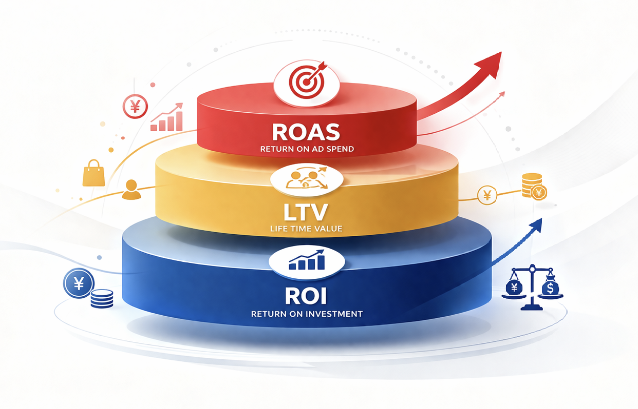 この記事では、スマホゲーム広告で使うKPIを一覧でまとめた上で、CPI・CPA・ROAS・LTVの違いと使い分けを解説します。