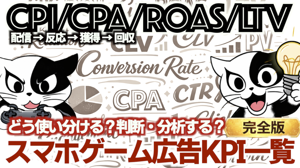 ここまで、スマホゲーム広告で使うKPIを、配信・反応、獲得、回収の3つに分けて解説してきました。